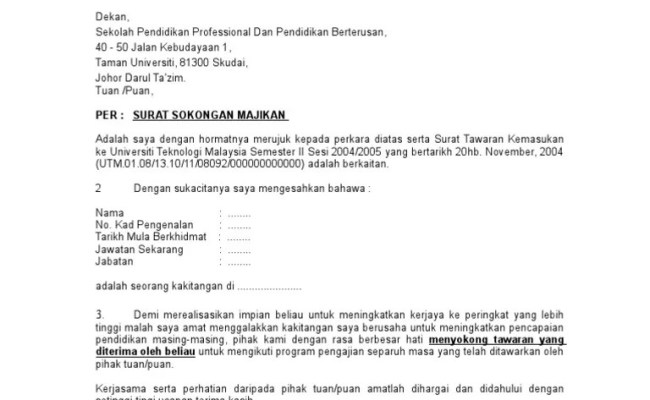Surat Sokongan Sambung Belajar : Contoh Surat Sokongan Pensyarah Sambung Belajar Backup Otosection. Jan 06, 2022 · kegunaan dan kelebihan surat lantikkan kerja dan jawatan ini untuk pekerja sangat banyak. Dec 31, 2020 surat permohonan kerja tenaga pengajar in english, surat permohonan. Pdf download 22. Arahan amalan bil 3 hingga 8 tahun 2014 practice direction no 3 until 8 of 2014: